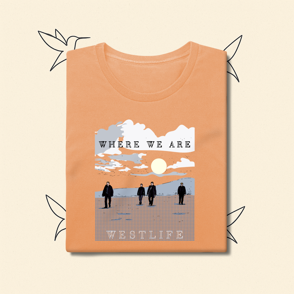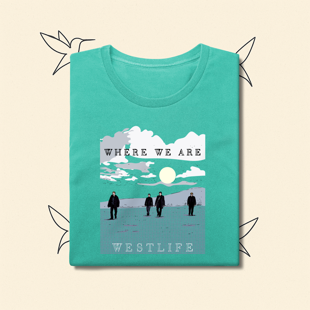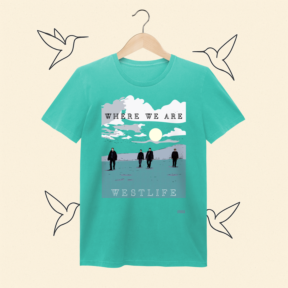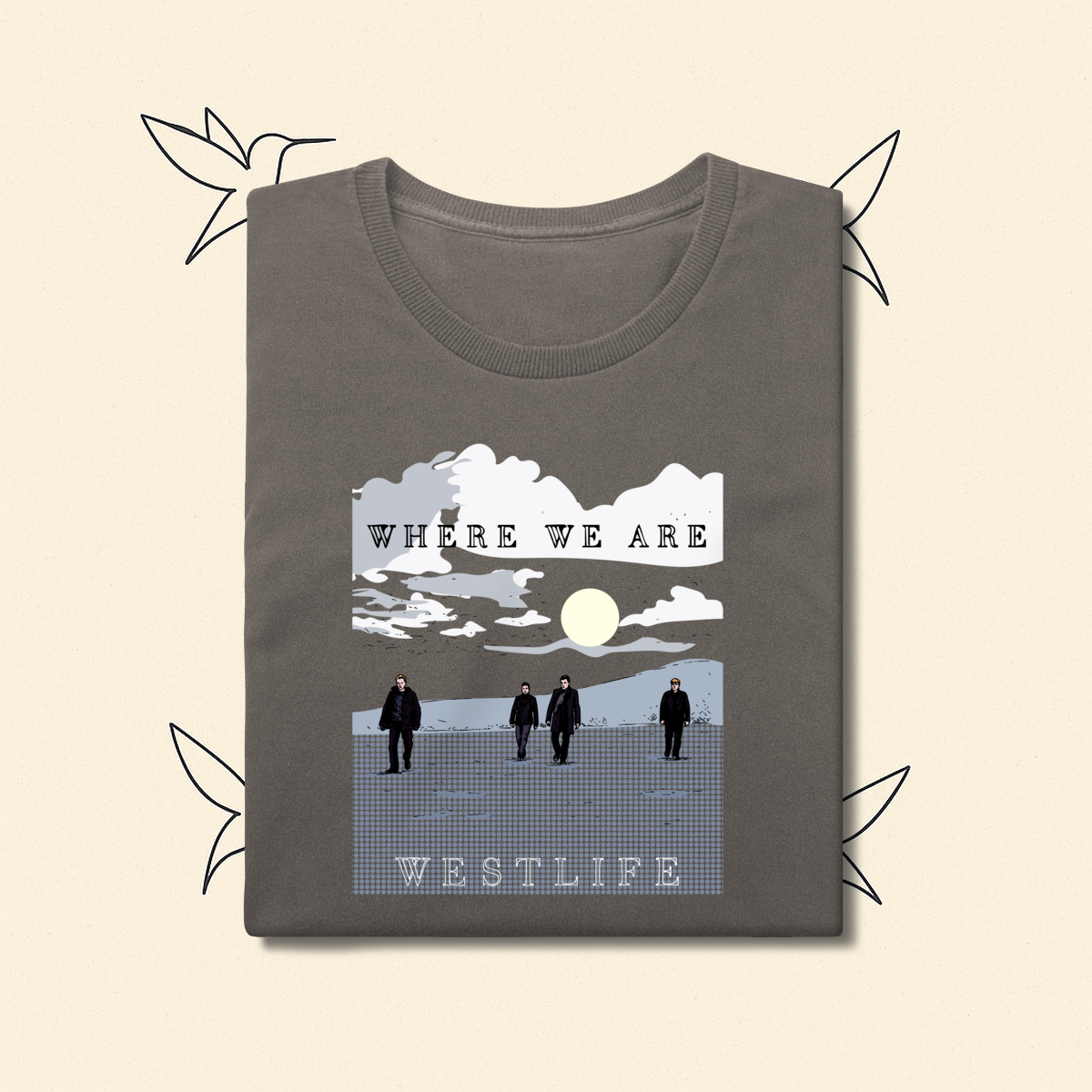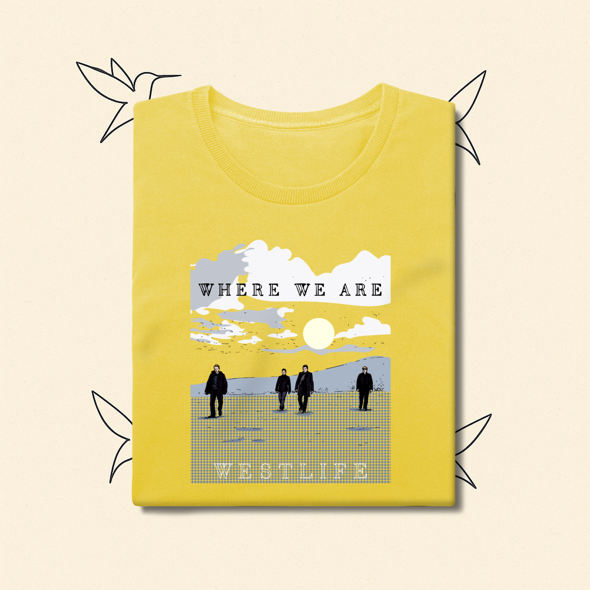 Para os dias em que a nostalgia bate forte. Inspirada na atmosfera introspectiva da era Where We Are, esta estampa traz Shane, Mark, Kian e Nicky em uma composição visual que transmite serenidade e resiliência. Uma peça feita para fãs que entendem que o amor pelo Westlife vai muito além da música: é um sentimento que se veste.