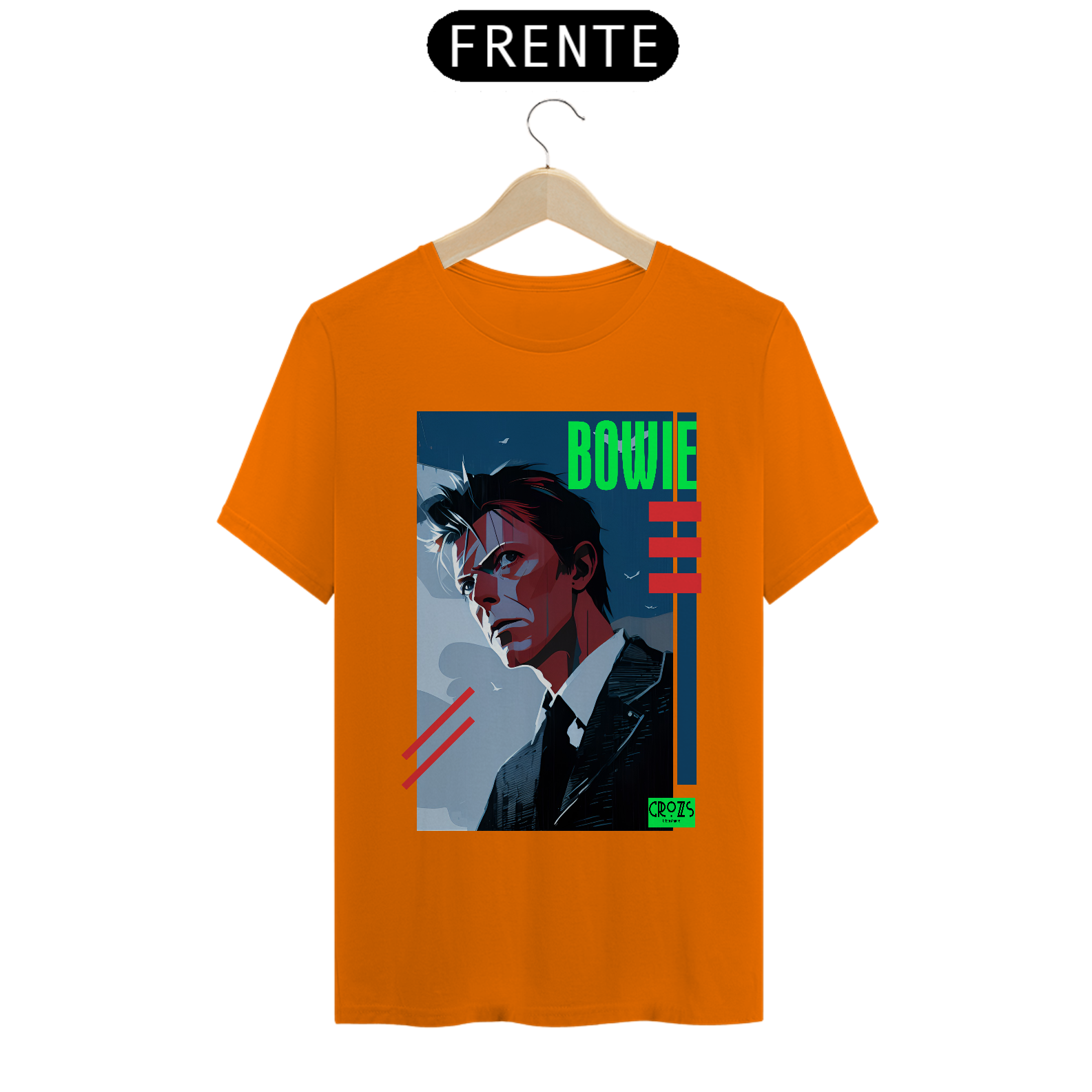 A estampa da camiseta foi cuidadosamente criada para capturar o estilo único e inconfundível do David Bowie, com um design vibrante e cheio de personalidade. A imagem em destaque é um verdadeiro tributo ao legado do músico, trazendo todo o seu charme e magnetismo para a estampa.