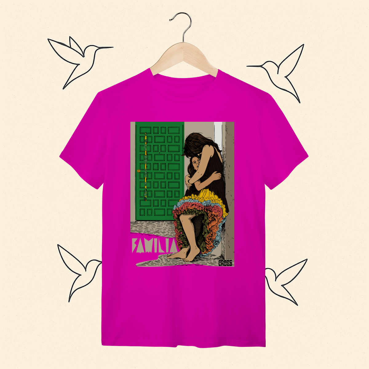 Cores do produto: Como cada tela de computador ou celular tem seu próprio jeito de mostrar cores, então a cor da sua camiseta e da estampa pode ser um pouco diferente do que você viu online.