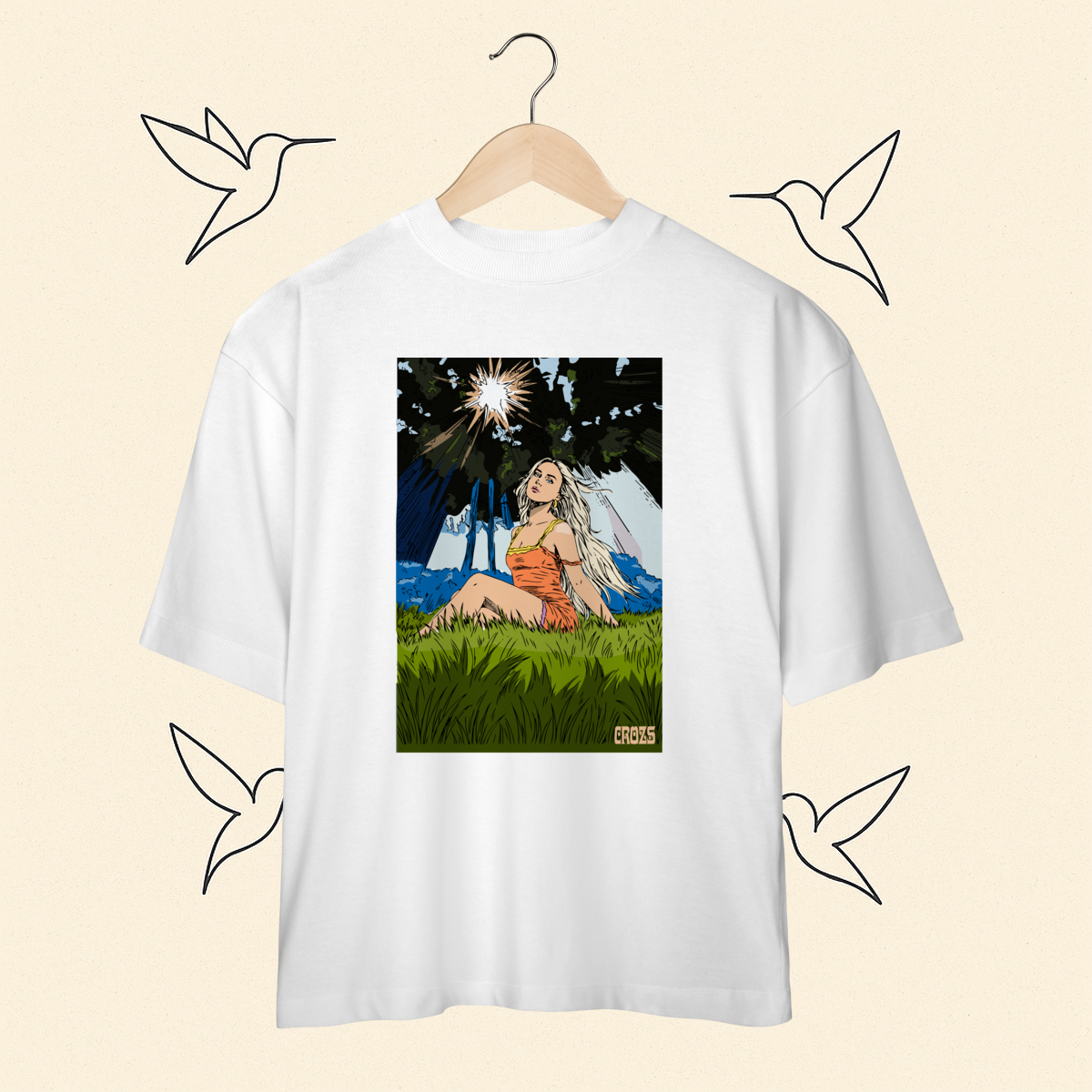 Cores do produto: Como cada tela de computador ou celular tem seu próprio jeito de mostrar cores, então a cor da sua camiseta e da estampa pode ser um pouco diferente do que você viu online.
